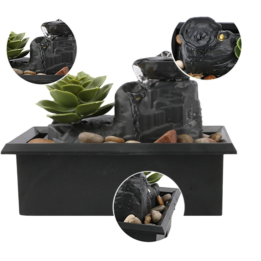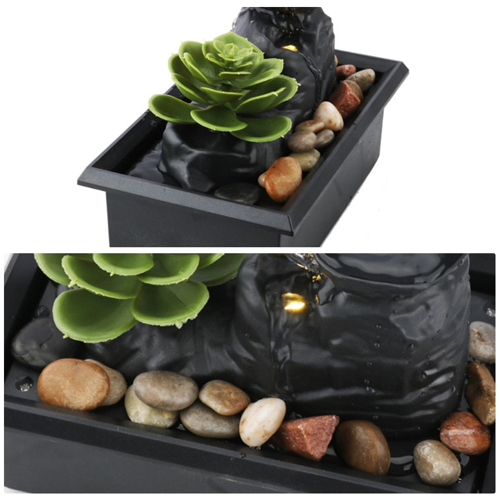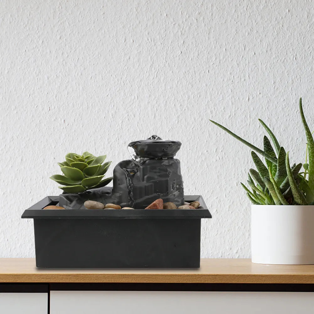 Introduce tranquility into your living space with our Desktop Flowing Waterfall, elegantly designed from durable ABS material. Measuring a compact 6.3 X 3.54 X 4.65 inches, this indoor fountain decoration is a fashionable addition to create a peaceful ambiance in your home. It serves as a perfect decor element, suitable for various settings including bedrooms, living rooms, study rooms, offices, and tea rooms. Meticulously crafted with exquisite workmanship, its unique shape offers both decorative charm and ornamental beauty. Installation is a breeze – simply place pebbles on the fountain base, add water, and either plug it into a power source or use battery power. Watch as the water gracefully forms a fountain, flowing down to create a soothing waterfall effect. Elevate your decor and ambiance effortlessly with our Desktop Flowing Waterfall, where simplicity meets serenity.