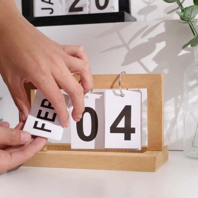 Stay organized in style with our Flip Desk Calendar, available in both wood and metal materials. This minimalist desktop calendar offers a simple and intuitive way to keep track of dates, as you can effortlessly flip the numbered and lettered cards to display today's date. With its perpetual calendar design, a single paper pad for the month and day can be easily adjusted to reflect the current date, making it a timeless and practical addition to your home or office. Crafted with a focus on quality, this calendar showcases modern and vintage styles, offering a portable and foldable solution that doubles as a multifunctional home decoration. Keep your schedule in check while adding a touch of elegance to your workspace with our Flip Desk Calendar.