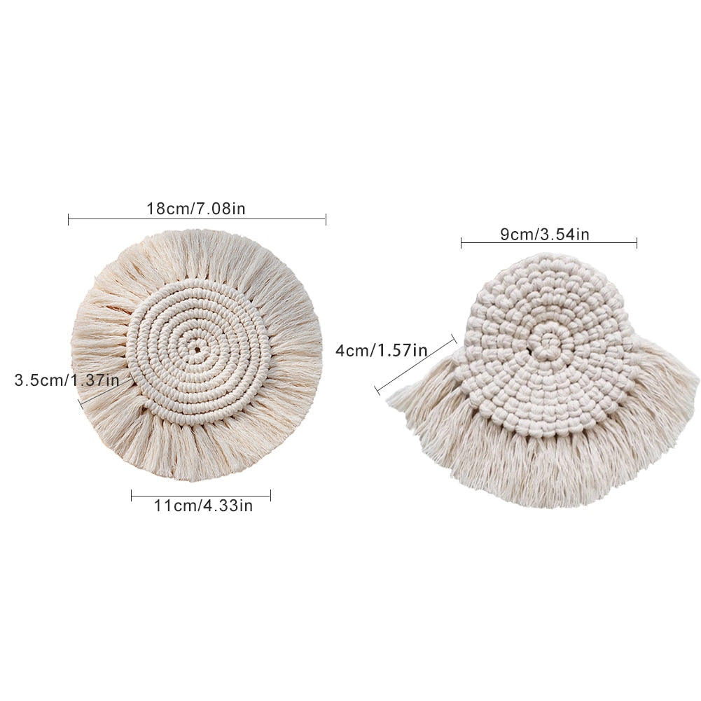 Our Macrame Cup Mat is a delightful piece of home decor that seamlessly combines style and functionality. Crafted from high-quality cotton rope, these intricate cup mats not only protect your surfaces from heat and moisture but also add a touch of bohemian charm to your table settings. The elegant macrame design showcases fine craftsmanship and attention to detail, making them the perfect addition to elevate your dining experience. Impress your guests and infuse a sense of eco-friendly sophistication into your home with these unique cup mats.